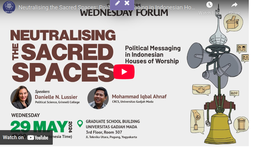 The politicisation of houses of worship has become a major issue in recent elections in Indonesia. A key concern is the fear that sacred spaces will become a polarising platform for electoral mobilisation. However, the impact of political messaging from religious leaders is not always straightforward, including those delivered in houses of worship. This presentation will examine frequent claims that religion serves as a motivator of political behaviour in Muslim-majority contexts. Through an examination of 71 sermons that took place in mosques and churches in Yogyakarta prior to elections in 2017 and 2019, we analysed the frequency, style, tone, and consistency of political content, which are key in their potential as a mobilizing force for political action.